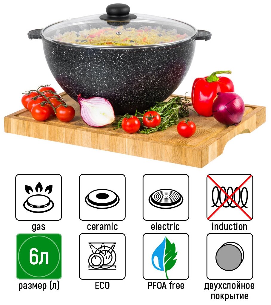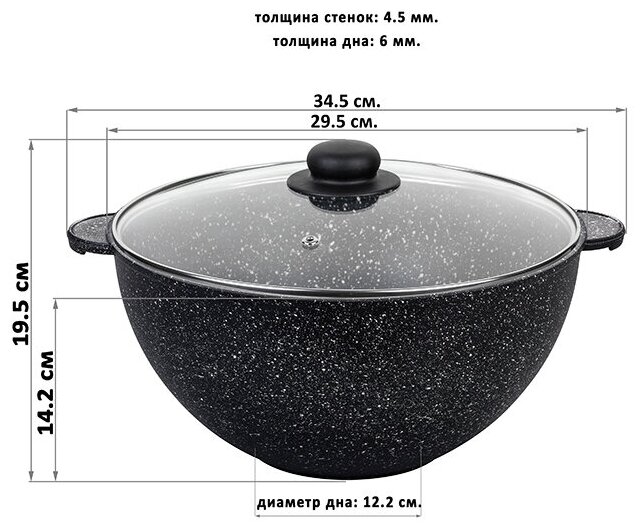 Казан 6 л гармония вкуса "Черный мрамор" С крышкой ф28, 34,5*29,5*19,5 см информация: