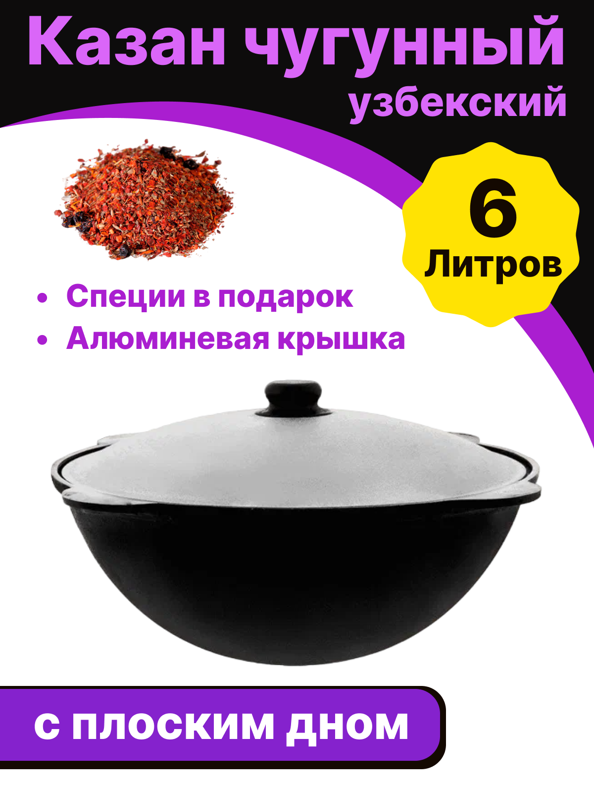 10 цен на Казан чугунный Узбекский Наманган 6 л. плоское дно с крышкой в комплекте