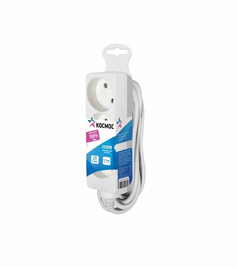 10 цен на Удлинитель 3х1.5м без заземл. 16А IP20 ПВС 2х1 космос YKsm1.5m-3g(K)