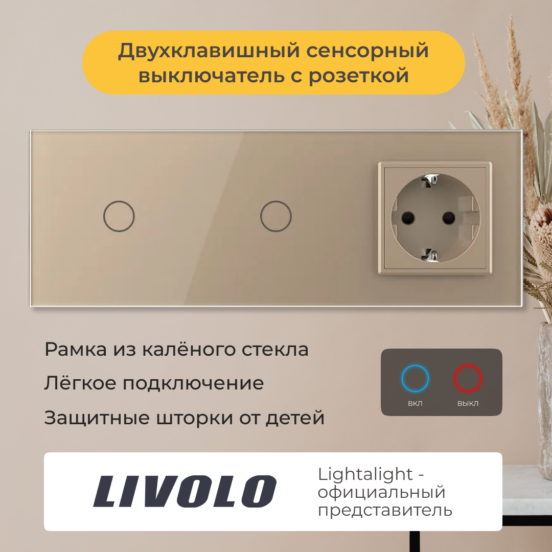 10 цен на Двухклавишный сенсорный выключатель Livolo с розеткой (VL-C701/C701/C1EU-13)