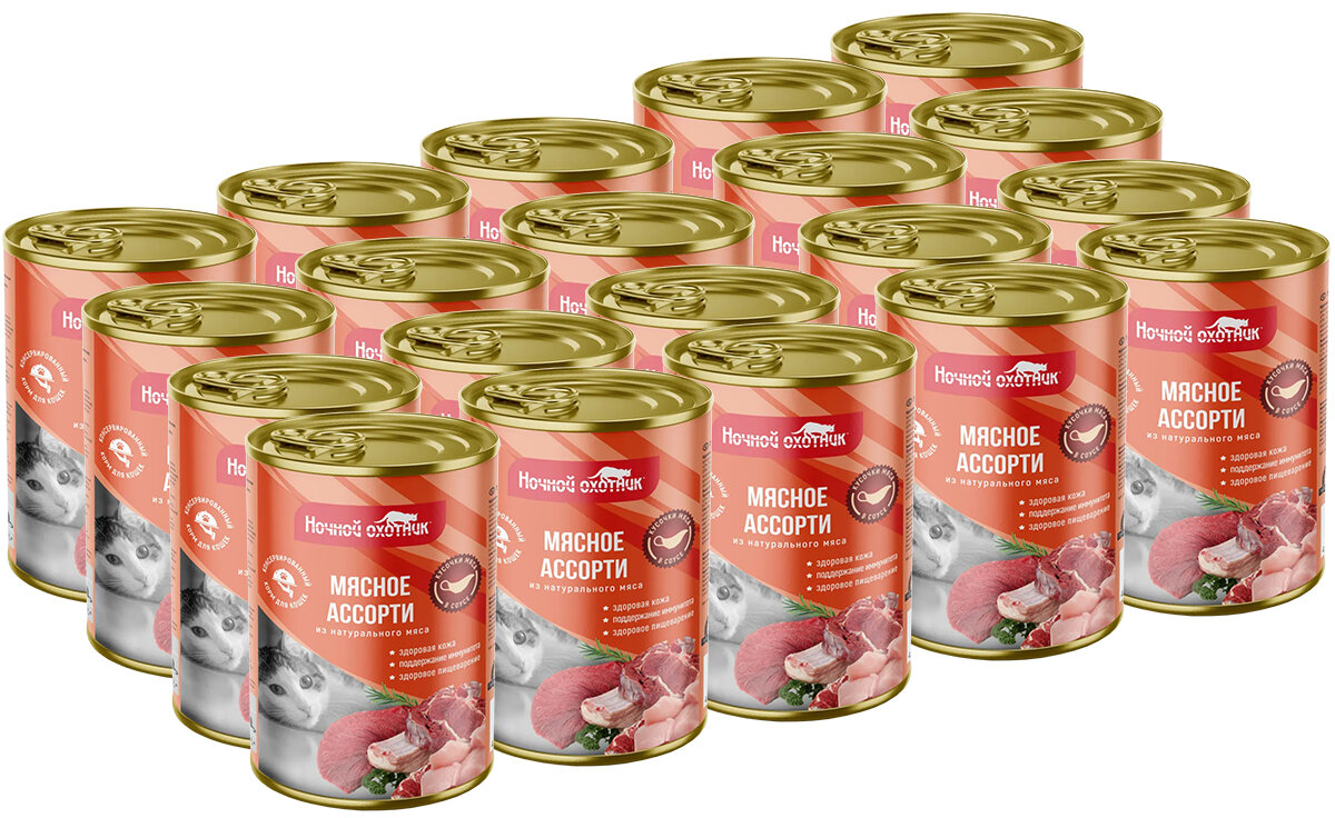 Ночной охотник Консервы для кошек мясное ассорти в соусе, 415г 0.415 кг 431 ₽