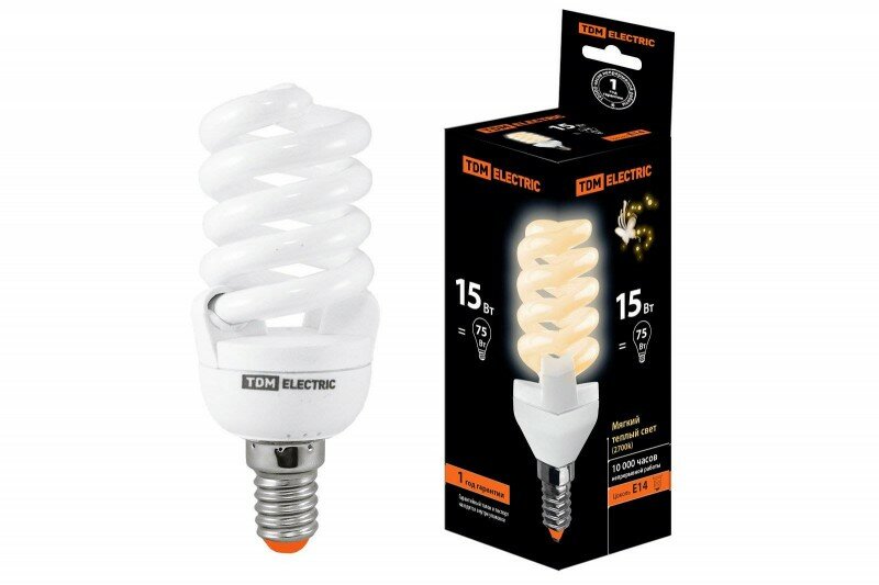 Отзывы на Tdm Лампа энергосберегающая КЛЛ-FSТ2-15 Вт-2700 К–Е14 SQ0323-0055