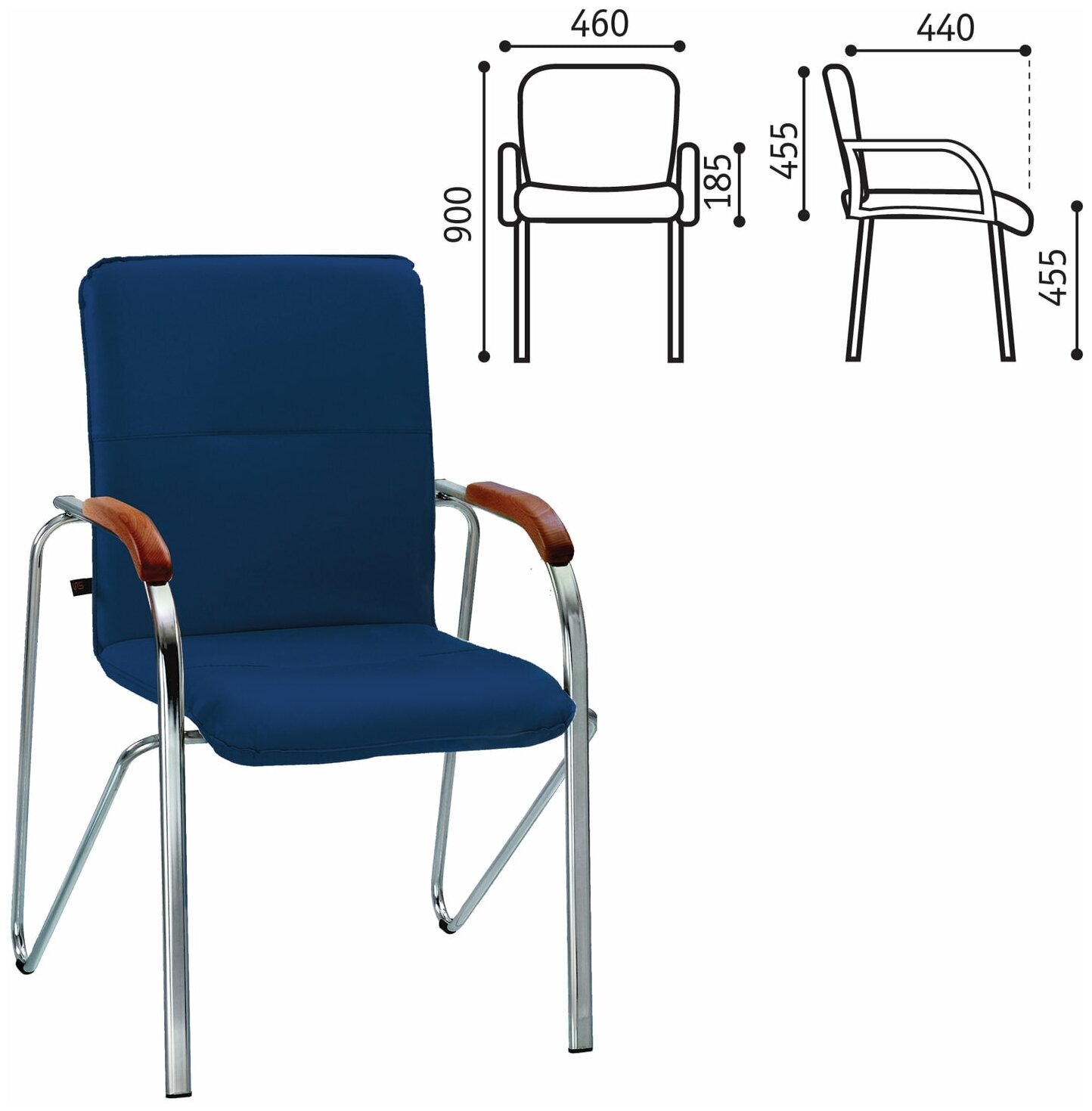 10 цен на Кресло для приемных и переговорных "Samba" (дерево 1.023), хром.каркас, кожзам синий V-15, 16277