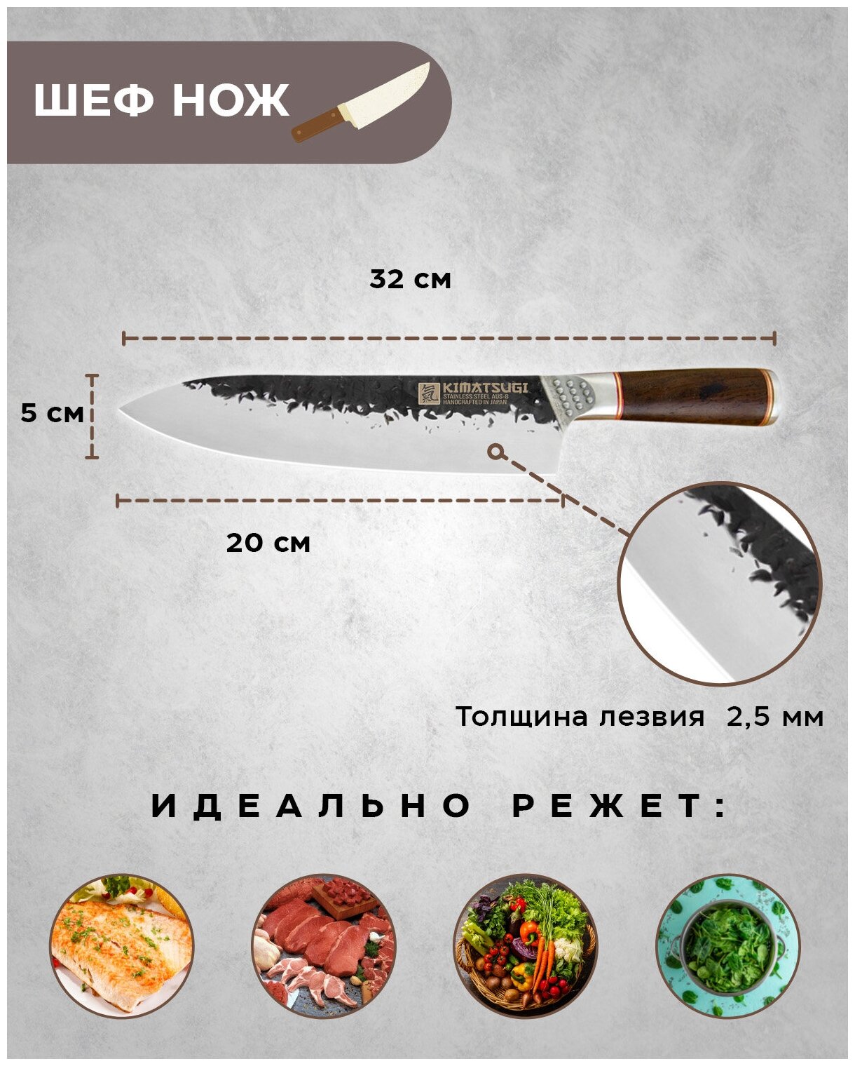 10 цен на Набор японских кухонных ножей Kimatsugi / 2 предмета: Шеф-нож и Универсальный / Японская сталь AUS-8 / Каждый нож в подарочной коробке