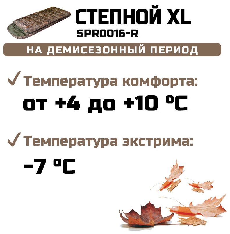 Спальный мешок одеяло Prival Степной XL КМФ лес, t extr -7 °С, 220х95, молния справа информация: