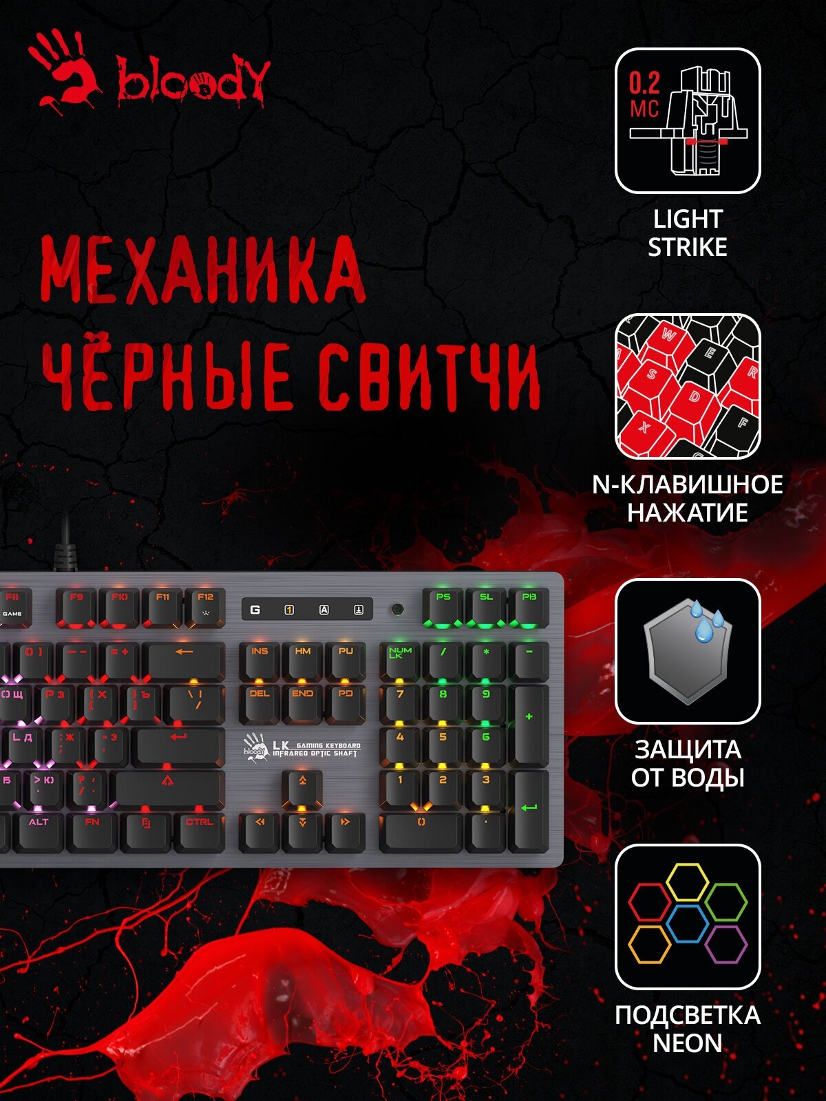 Клавиатура A4Tech Bloody B760 механическая серый USB for gamer LED (B760 GREY (BLACK SWITCH)) информация: