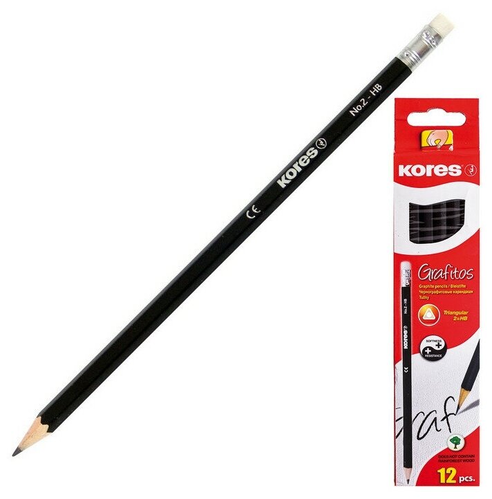 Kores Набор карандашей чернографитных трехгранных HB без ластика, 12 шт. (92301)
