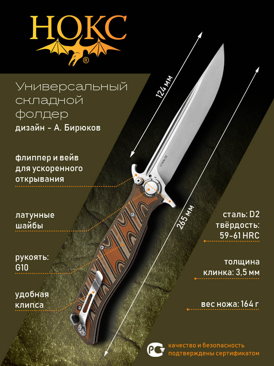 Нож складной нокс 342-009406 (Финка-С), универсальный складной фолдер, сталь D2 информация: