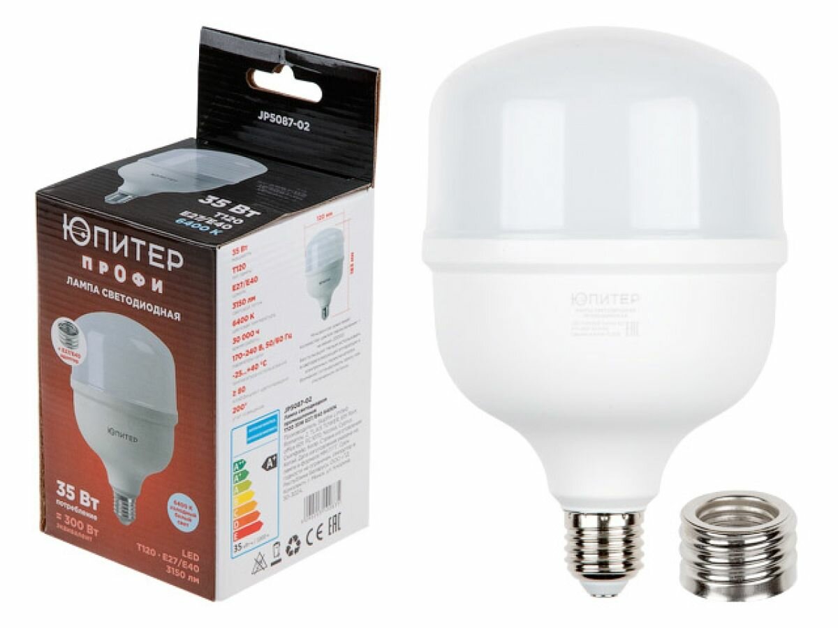 10 цен на Лампа светодиодная промышленная E27/E40 35 Вт 6400К ЮПИТЕР T120 (JP5087-02)