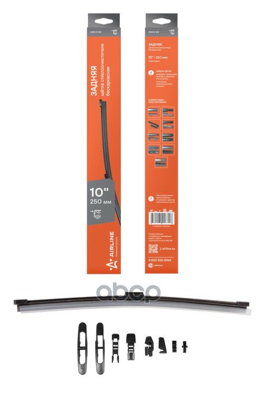 Отзывы на Щетка Стеклоочистителя 250 Мм (10) Задняя Бескаркасная, 8 Адаптеров (Awb-R-250) Airline Awbr250 AIRLINEAWBR250