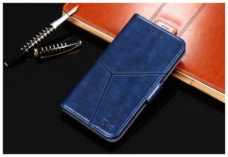 Отзывы на Чехол-книжка MyPads для Huawei nova 5T из качественной импортной кожи прошитый по контуру с необычным геометрическим швом цвет синий
