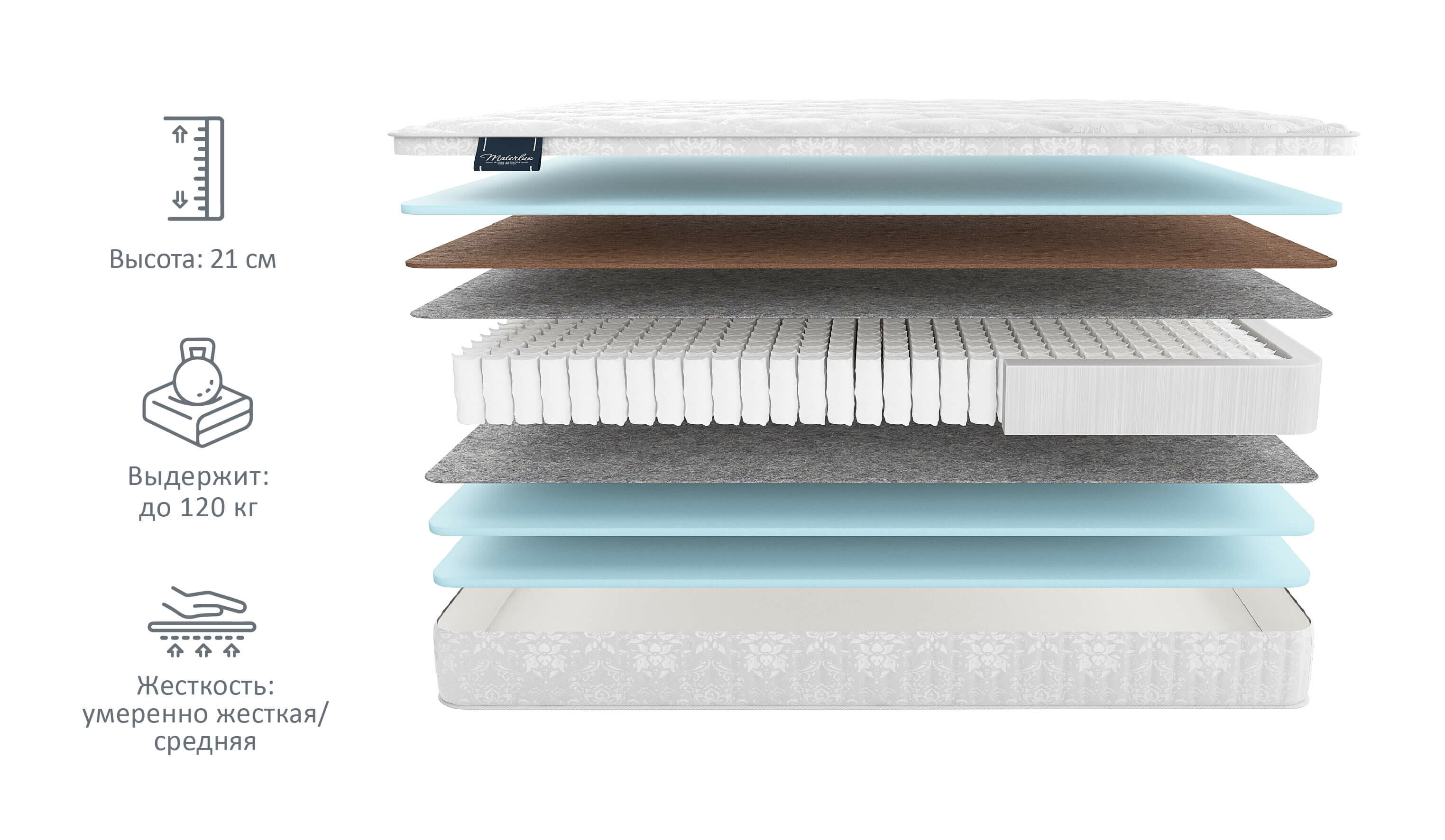 Фабрика Сна Матрас EDMOND, независимые пружины, кокос, средняя жесткость, анатомический, 90х200 см