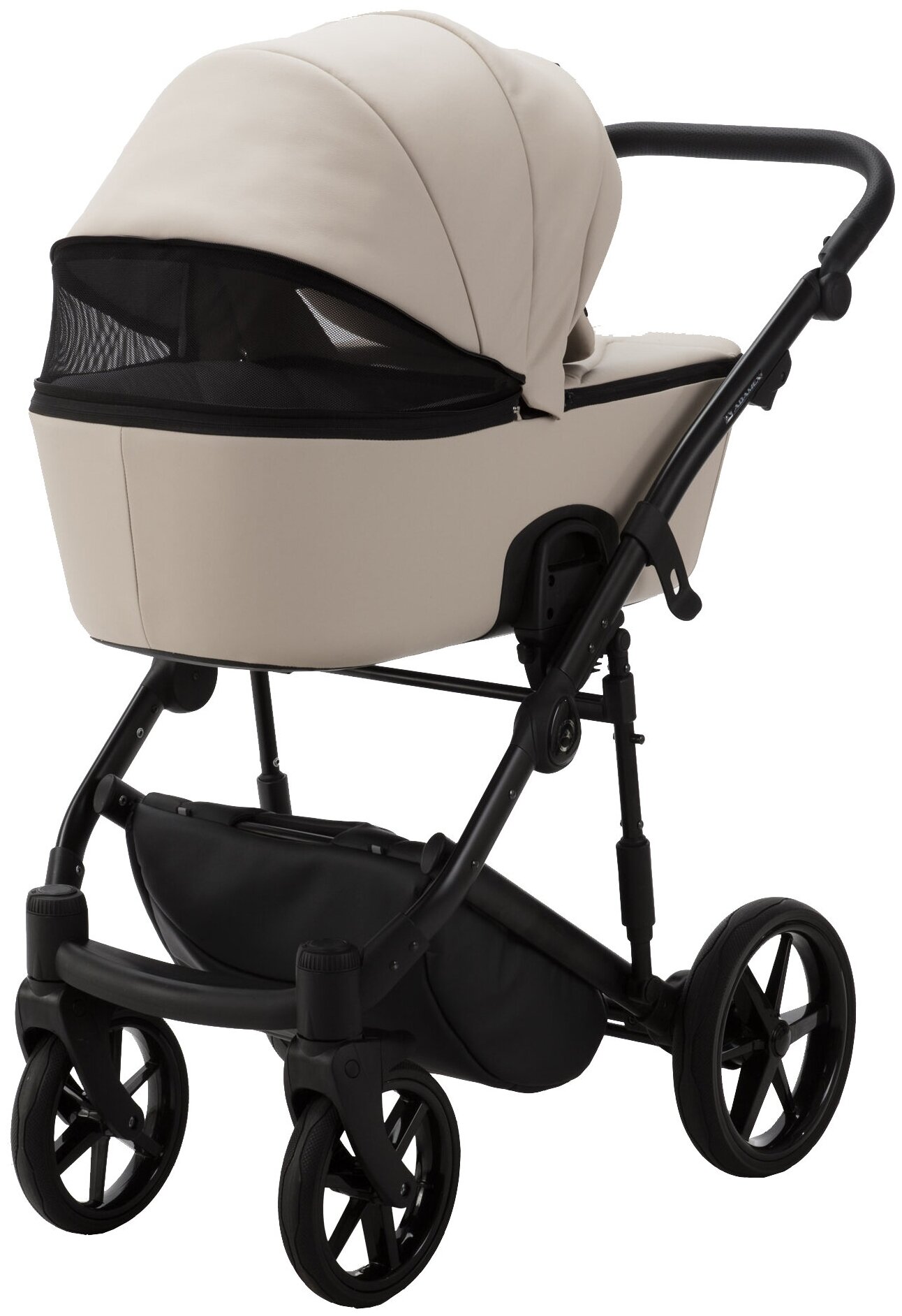 Коляска универсальная Adamex Mobi Deluxe 3 в 1, M-SD23 - Черная и светло-бежевая матовая эко-кожа