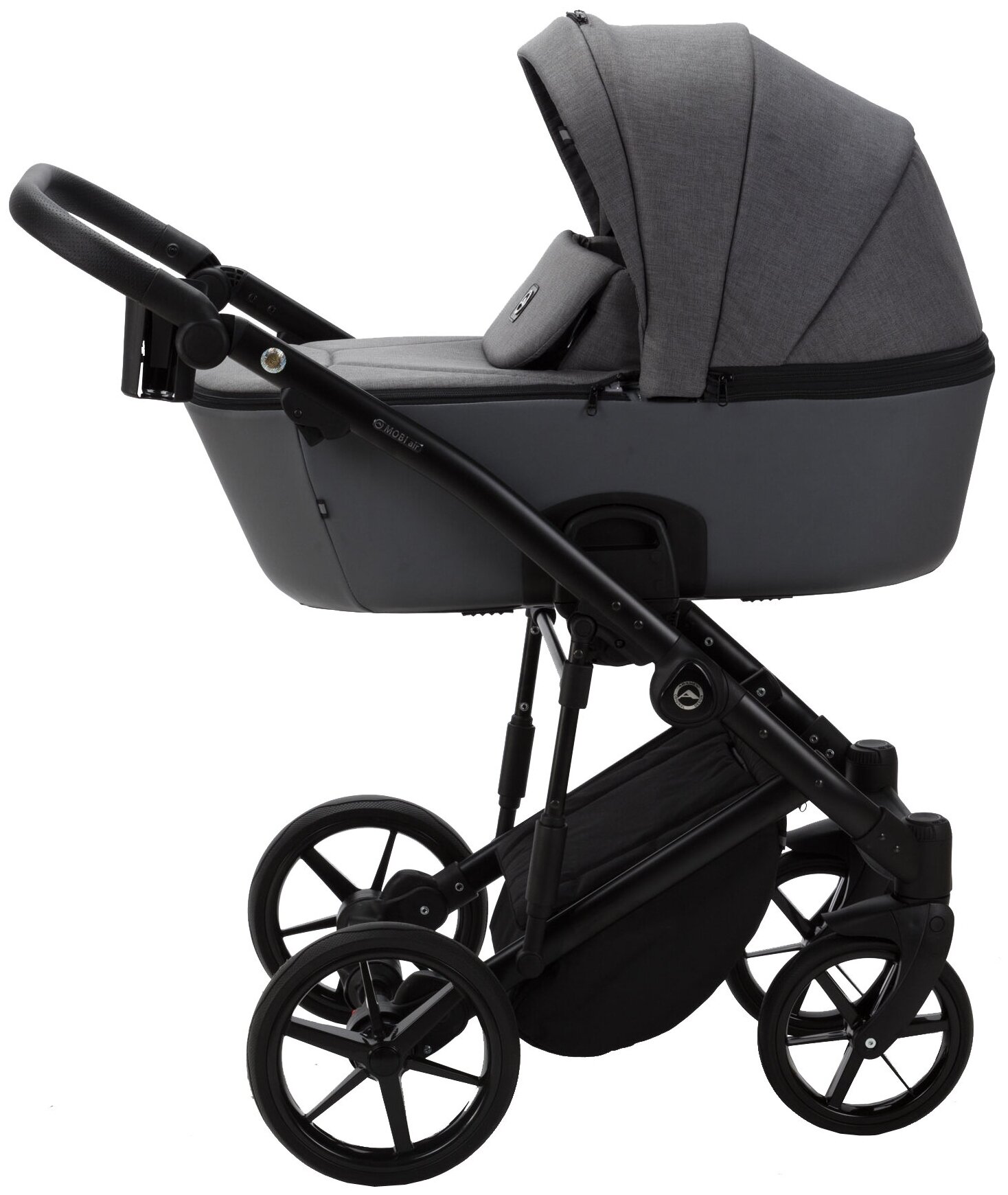 Коляска для новорожденных Adamex Mobi Lux 2 в 1, всесезонная прогулочная детская коляска темно серый текстиль/ эко-кожа информация: