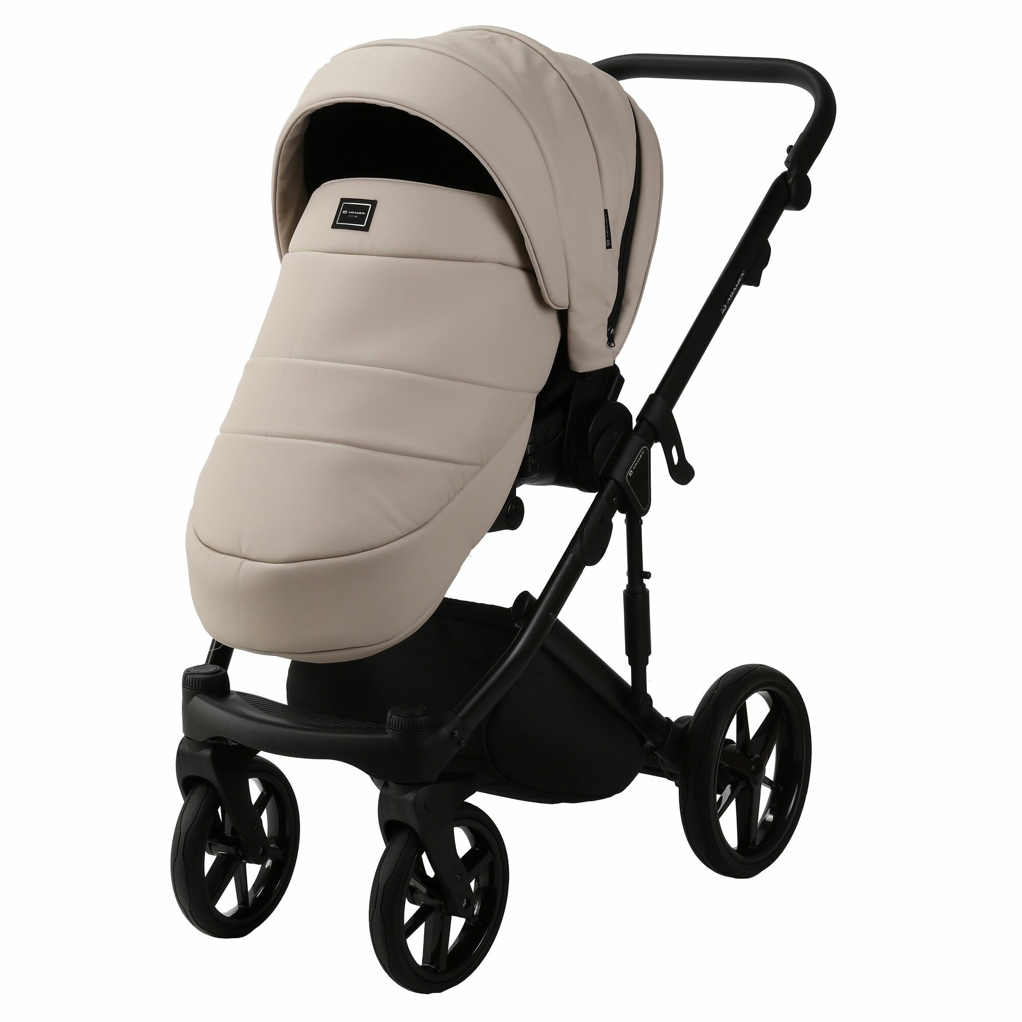 Детская универсальная коляска Adamex LANTI Deluxe 2 в 1 SD-110 (светло-бежевая экокожа, черная экокожа)