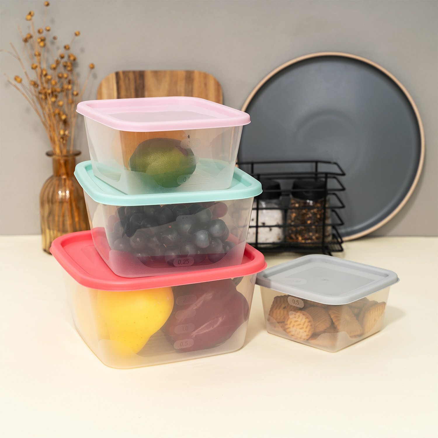 Набор емкостей для продуктов квадратных Fusion 4шт (2.6л; 1.7л; 1.1л; 0.63л) информация: