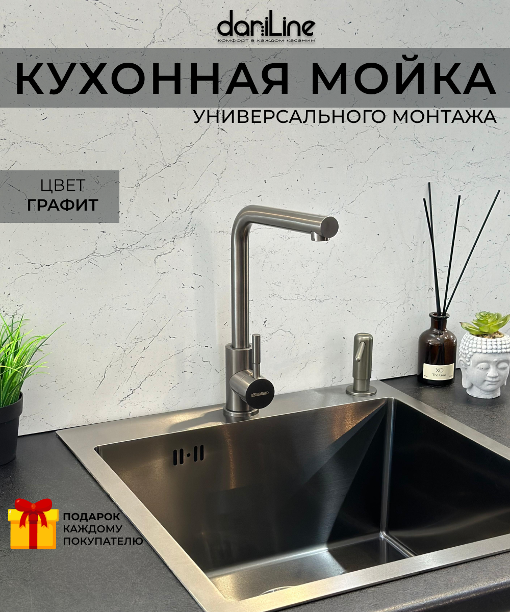 Отзывы на Мойка для кухни из нержавеющей стали,50х44х21, цвет графит,кухонная мойка, раковина для кухни