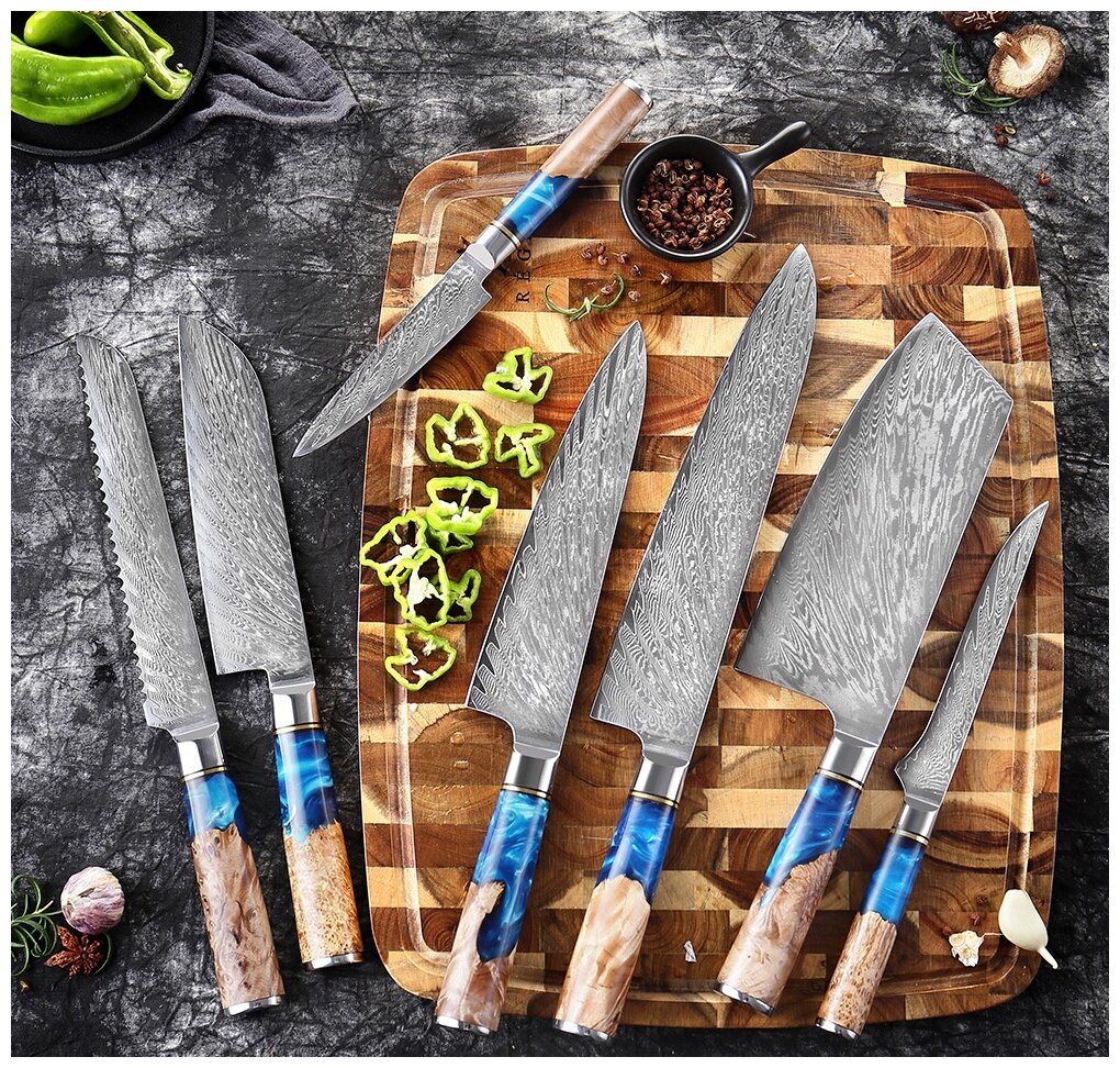 Характиристики этого товара не найдены!Отзывы на Классический кухонный нож TuoTown U150 TWB-D5 рукоять синий акрил+дерево, клинок 15см (VG10-Damascus)