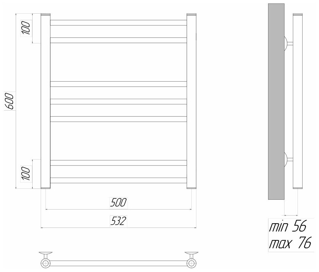10 цен на Полотенцесушитель электрический LEMARK URSUS LM72607EBL 500*600, нержавеющая сталь, черный