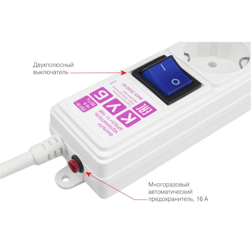 Сетевой фильтр Power Cube 5м, 6р белый 16А/3,5кВт (3x1,5)(SPG6-А2) информация: