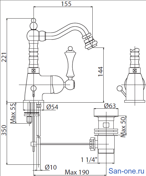 Смеситель для раковины (умывальника) Ростовская Мануфактура Сантехники SL77-001F однорычажный