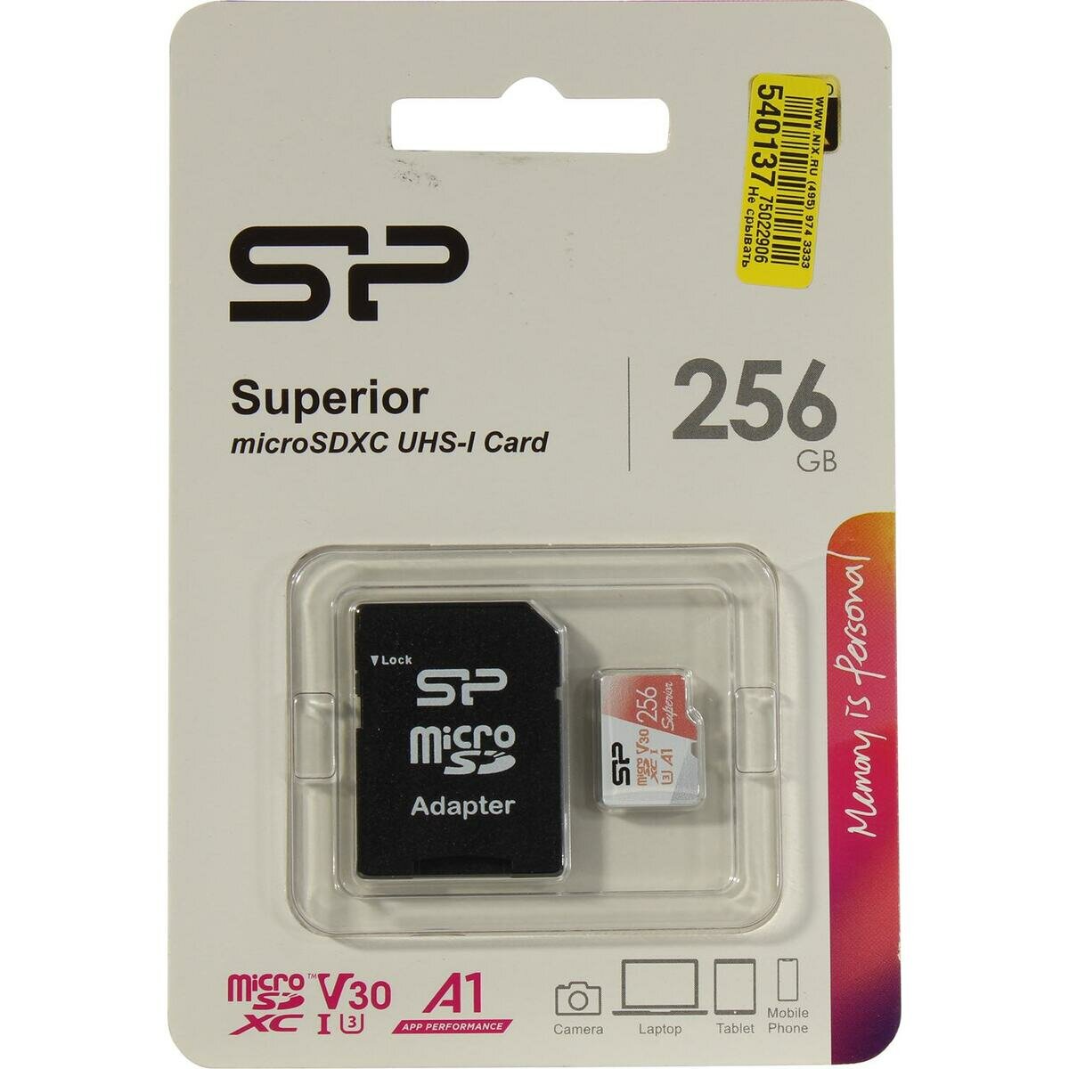 256Gb - Silicon Power Superior A1 MicroSDXC Class 10 Uhs-i U3 Sp256gbstxdv3v20sp с адаптером SD (Ори .