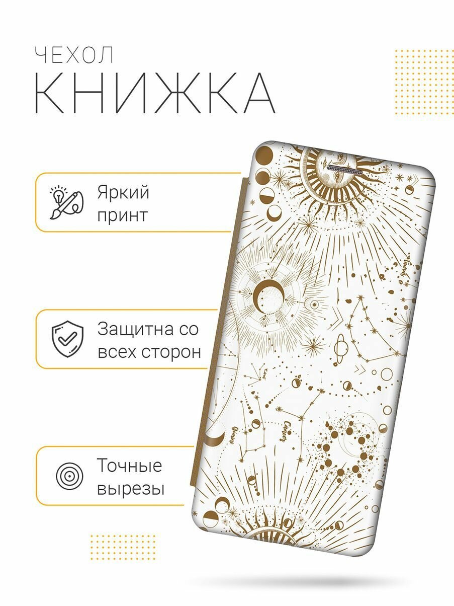 Отзывы на Чехол-книжка на Honor 8S / Huawei Y5 (2019) / Хуавей У5 2019 / Хонор 8с c принтом "Карта звездного неба" золотистый