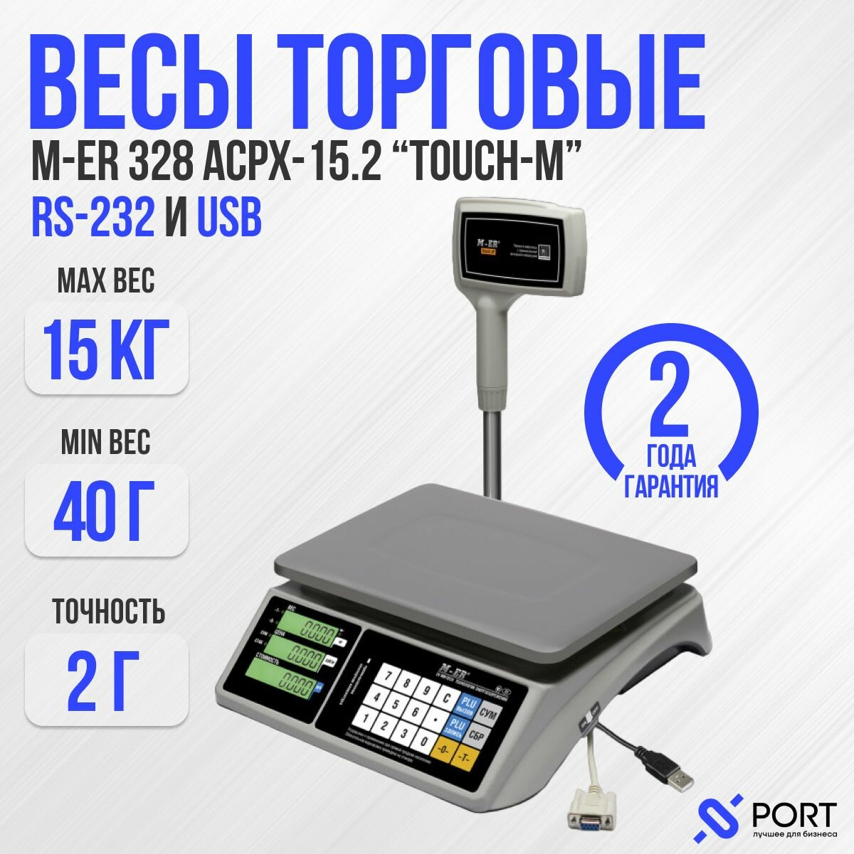 Весы электронные MERTECH M-ER 328 ACPX-15.2 до 15кг LED, USB, RS232 , 2 г, cо стойкой