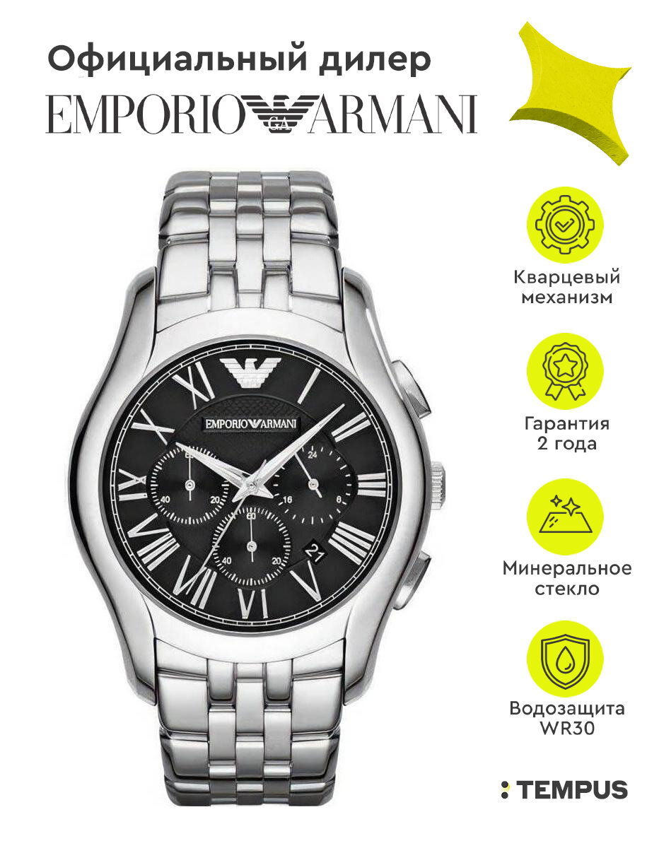 Часы наручные мужские Emporio Armani AR11587 кварцевые на стальном браслете серебристо цвета с минеральным стеклом водонепроницаемостью WR100 (10 атм)