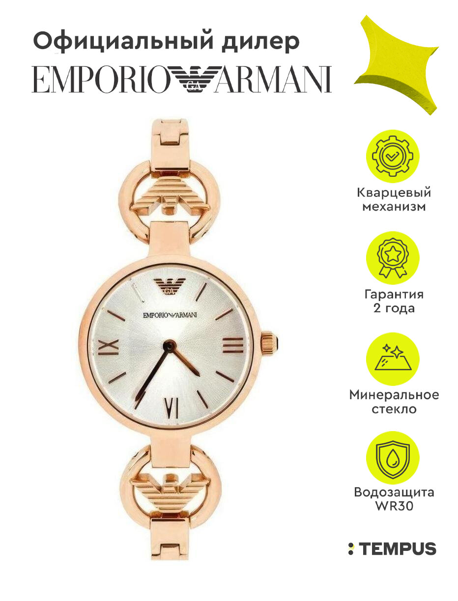 Часы наручные женские Emporio Armani AR11609 кварцевые на стальном браслете золотистого цвета с минеральным стеклом водонепроницаемостью WR50 (5 атм)
