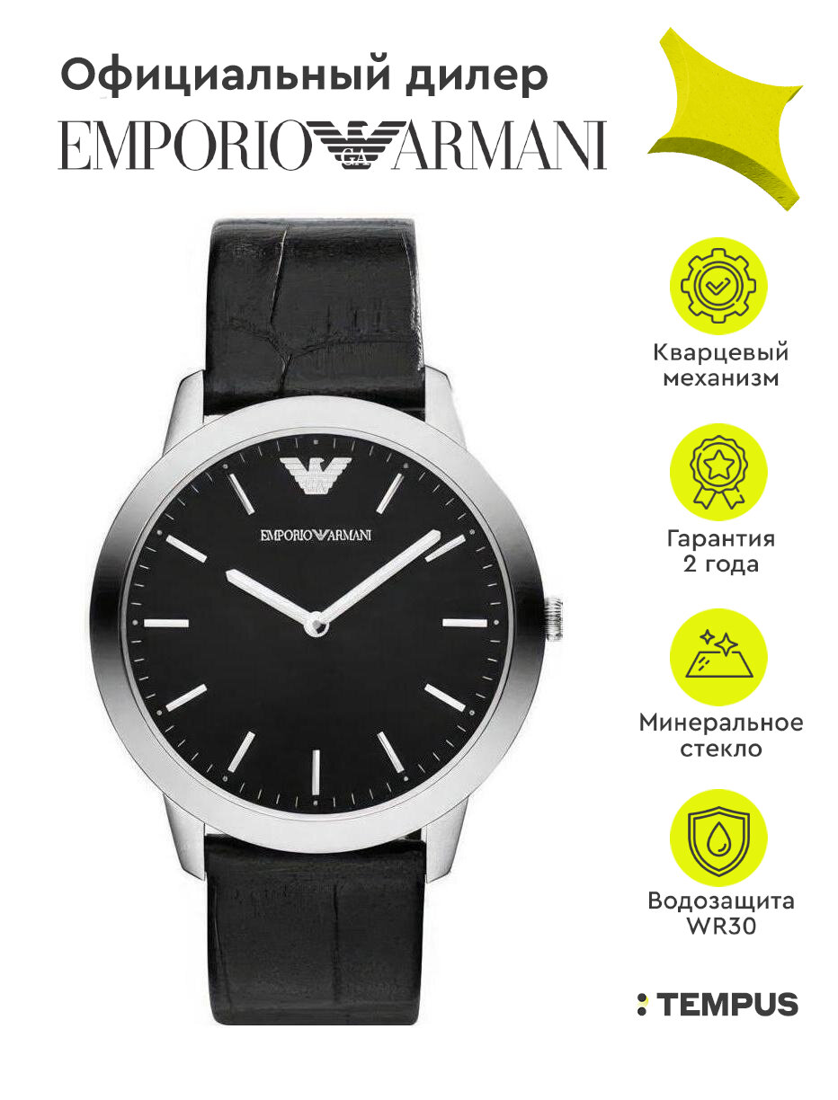 Часы наручные женские Emporio Armani AR11598 кварцевые на кожаном браслете черного цвета с минеральным стеклом водонепроницаемостью WR50 (5 атм)