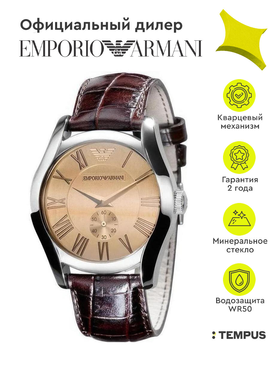 Часы наручные женские Emporio Armani AR11598 кварцевые на кожаном браслете черного цвета с минеральным стеклом водонепроницаемостью WR50 (5 атм)