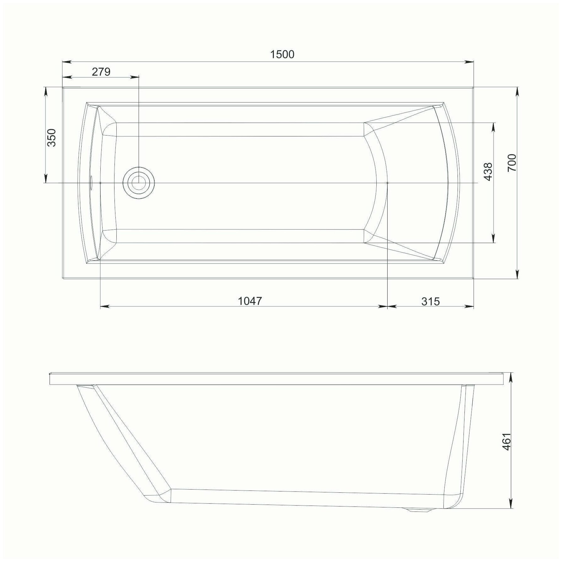 Ванна акриловая Mirsant Оптима 1500х700 мм, белый
