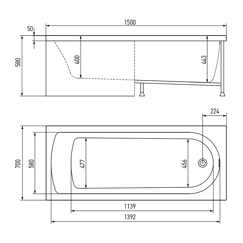Ванна Ceruttispa COMO150 акриловая (1500x750x560) отдельностоящая, белая