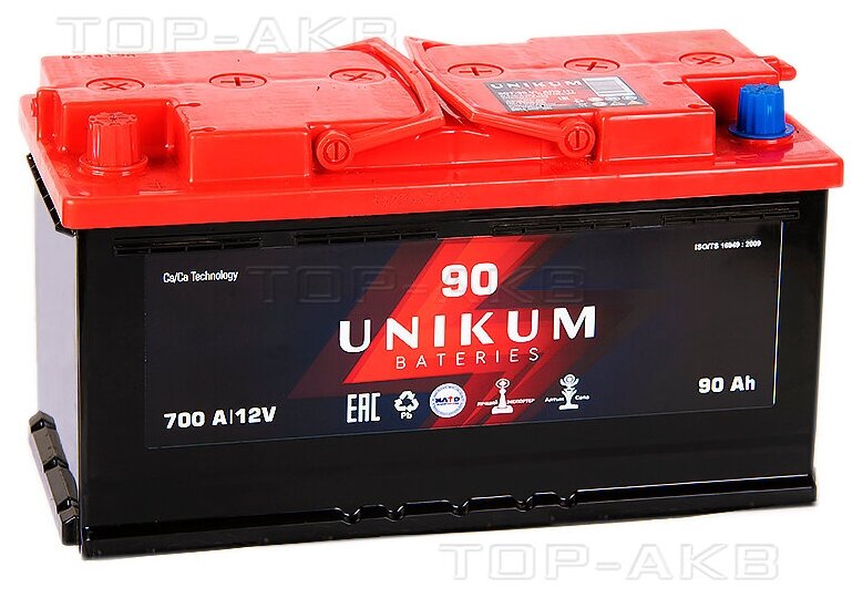 90 А.ч. UNIKUM 700А (пр.пол.) (353x175x190) зал. аккумуляторная батарея информация:
