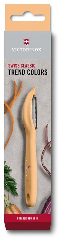 Овощечистка нож VICTORINOX Swiss Classic Trend Colors для чистки овощей, двустороннее зубчатое поворотное лезвие из нержавеющей стали, бежевая информация: