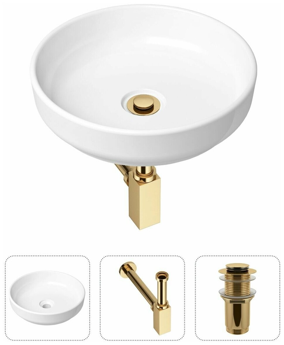 Комплект 3 в 1 Lavinia Boho Bathroom Sink 21520181: накладная фарфоровая раковина 40 см, металлический сифон, донный клапан информация:
