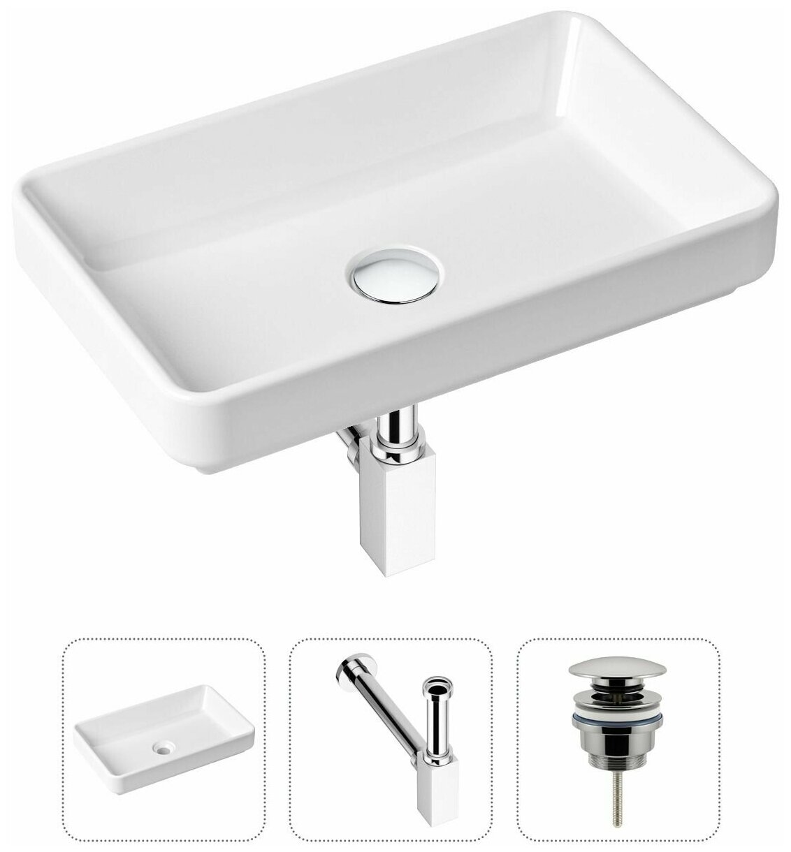Комплект 3 в 1 Lavinia Boho Bathroom Sink 21520124: накладная фарфоровая раковина 55 см, металлический сифон, донный клапан информация: