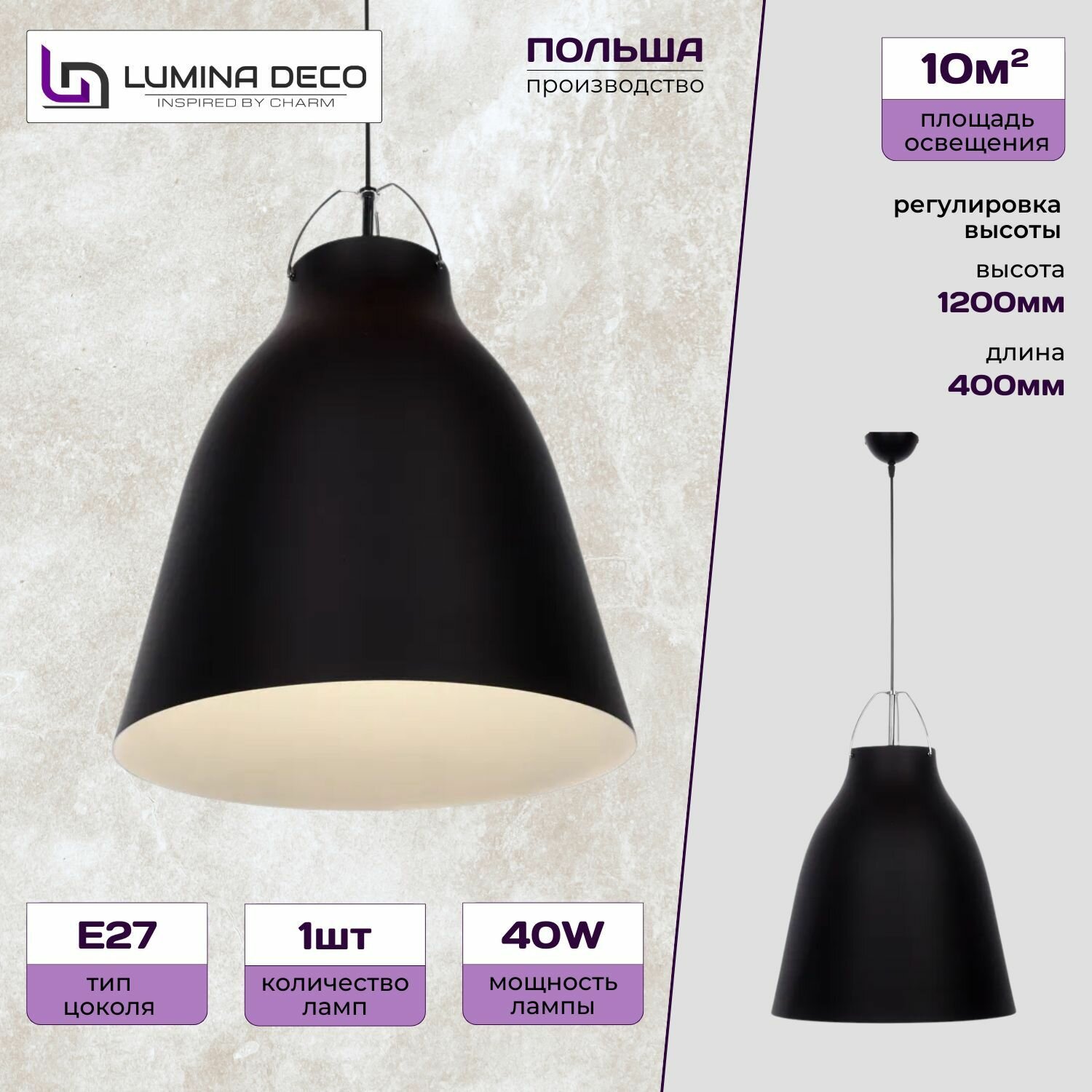 Подвесной светильник Lumina Deco Rayo LDP 7504-400 BK+WT информация: