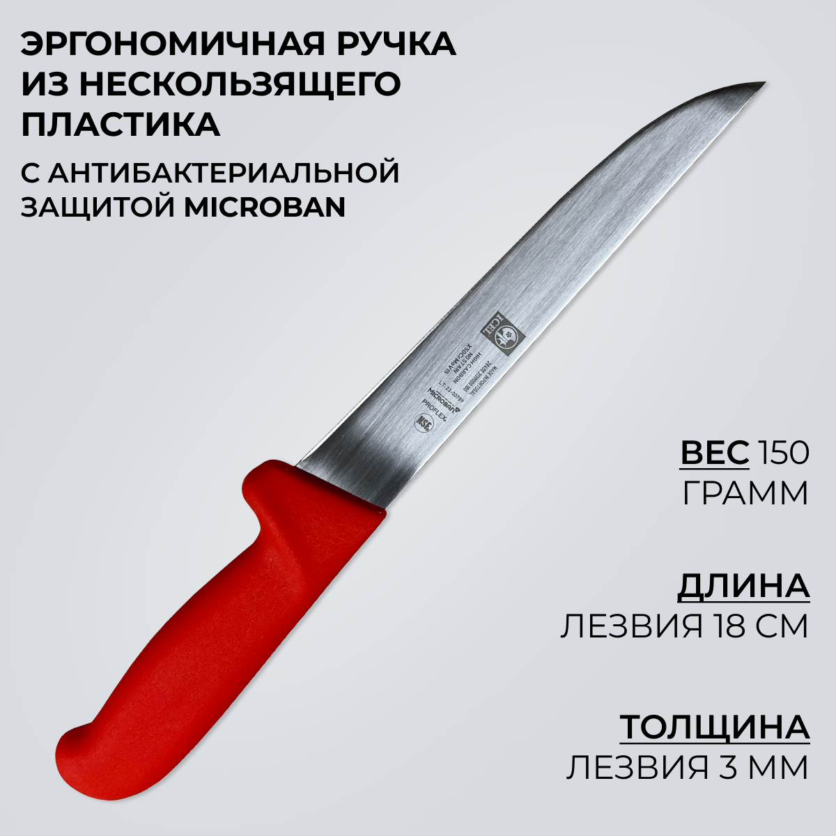 Нож ICEL обвалочный широкое лезвие 18 см, ручка с антибактериальной защитой Microban информация: