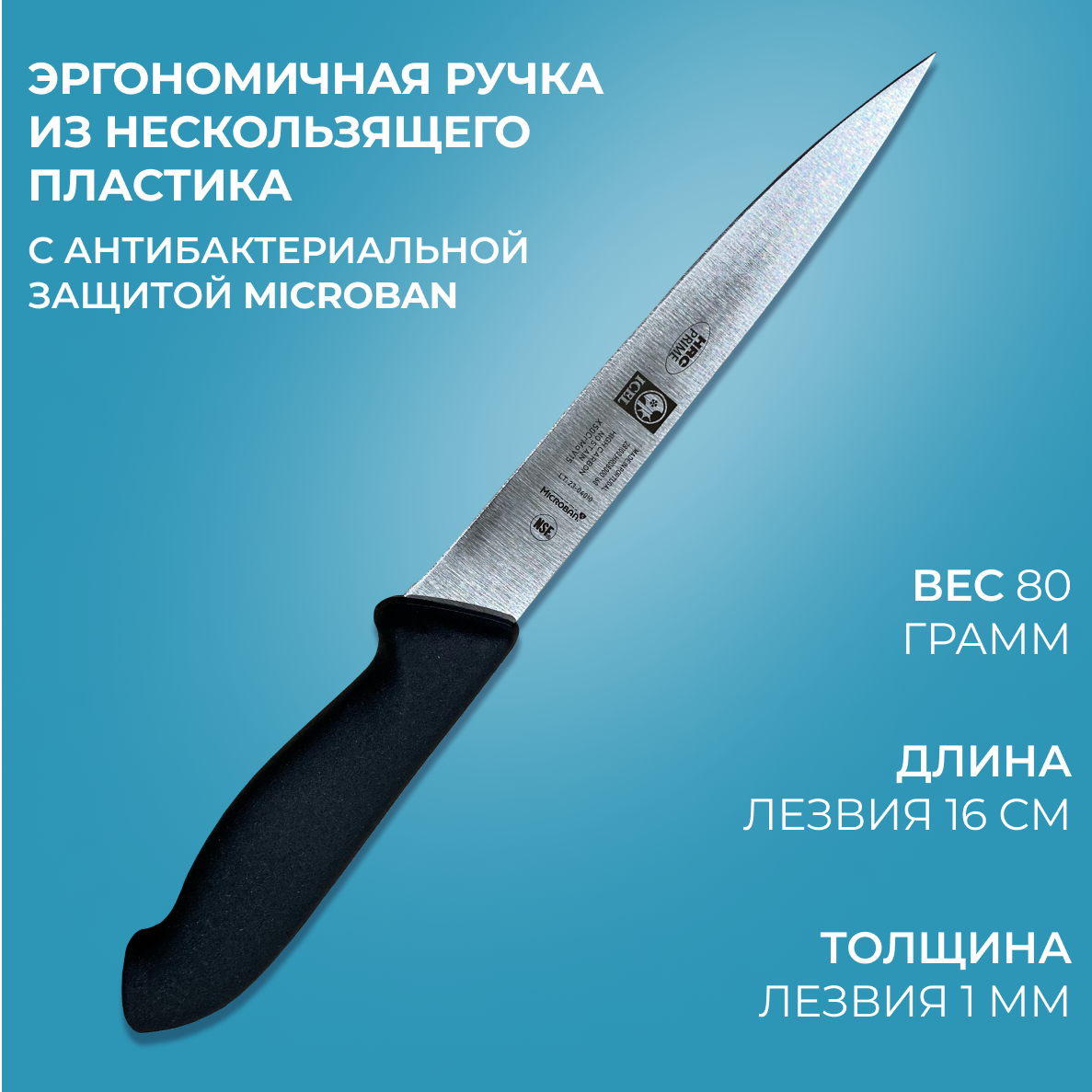 Нож ICEL филейный рыбный, лезвие 16 см, ручка с антибактериальной защитой Microban. информация: