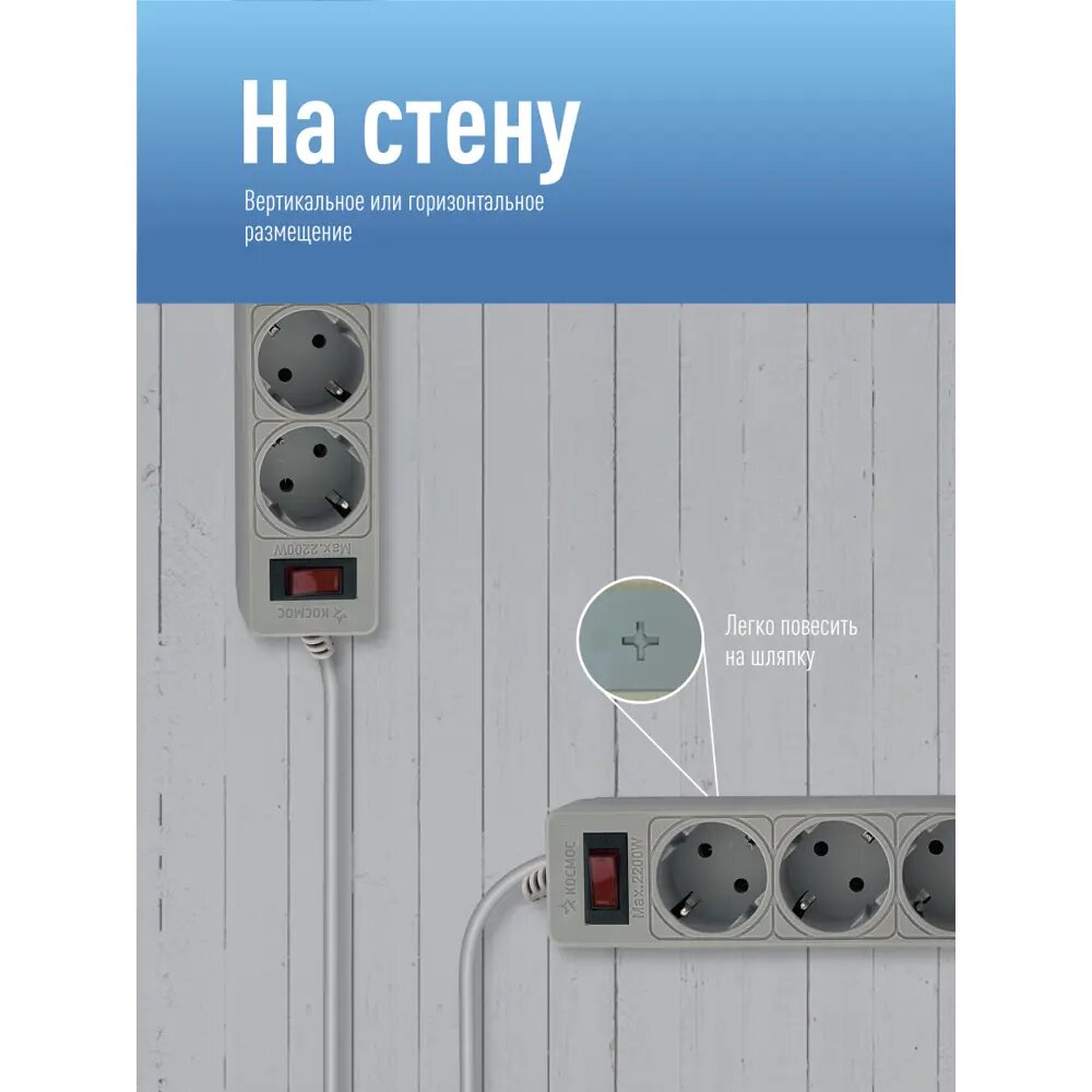 10 цен на Удлинитель с сетевым фильтром Космос 5х3 м с/з 3х0.75 серый