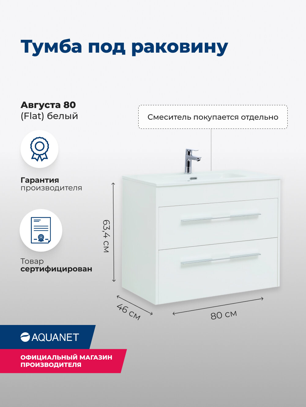 Тумба под раковину Aquanet Августа 80 (Flat) белый информация: