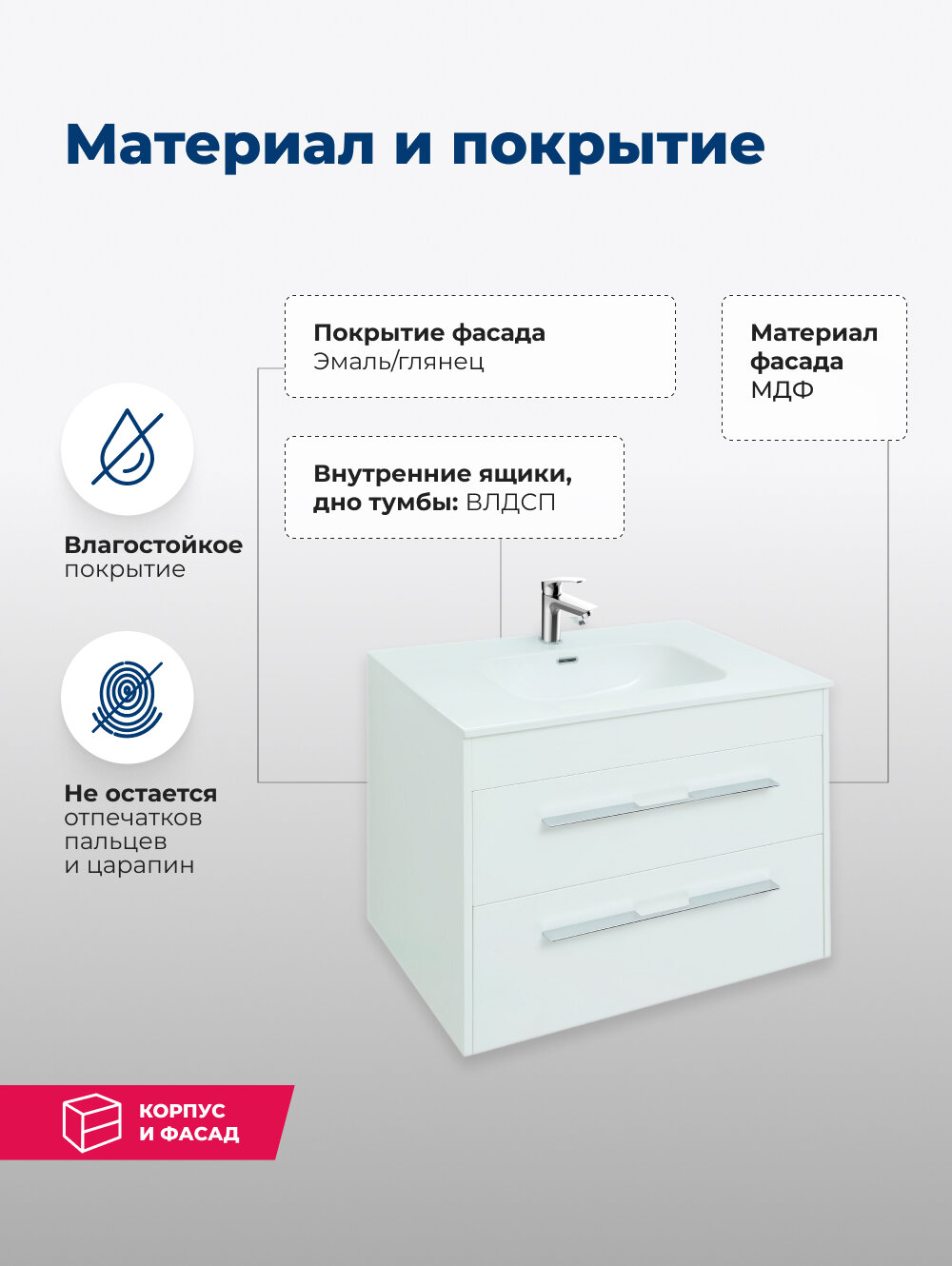 | Комплектация | Тумба Августа 80 (Flat) цв.белый глянец (277508), раковина в комплект не входит |
