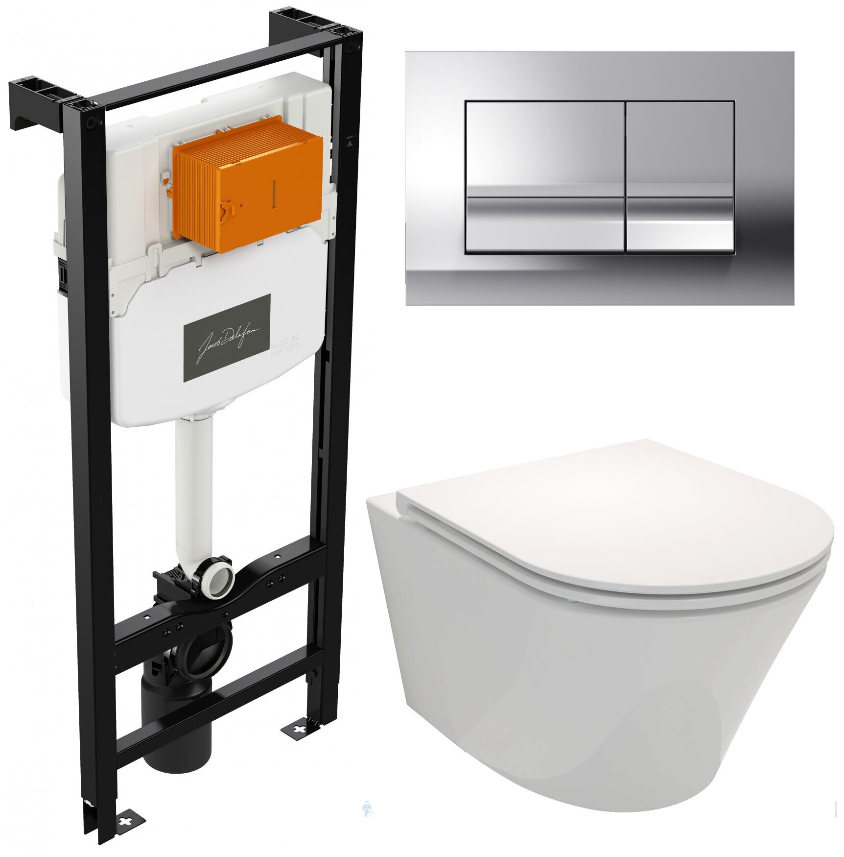 Комплект унитаза с инсталляцией Jacob Delafon Rodin+ E21749RU-00 с сиденьем Микролифт и клавишей смыва Хром