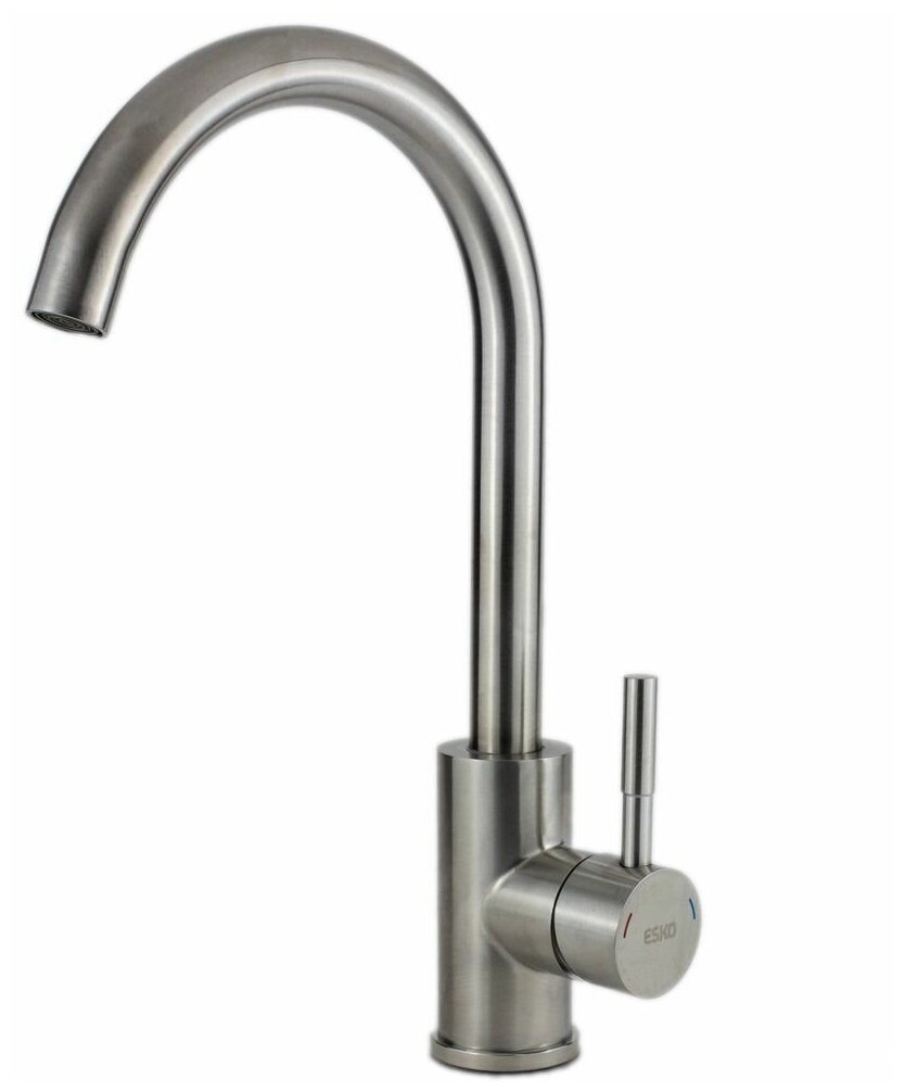 Смеситель для кухни 35к ESKO K4 "Kitchen" высокий поворотный излив, крепление под гайку, нерж сталь