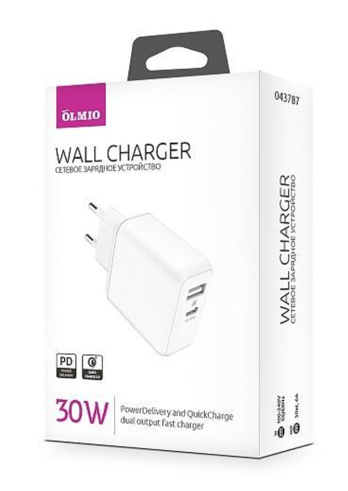 Сетевое зарядное устройство Olmio 043787 30W Type-C + USB PD белый . информация: