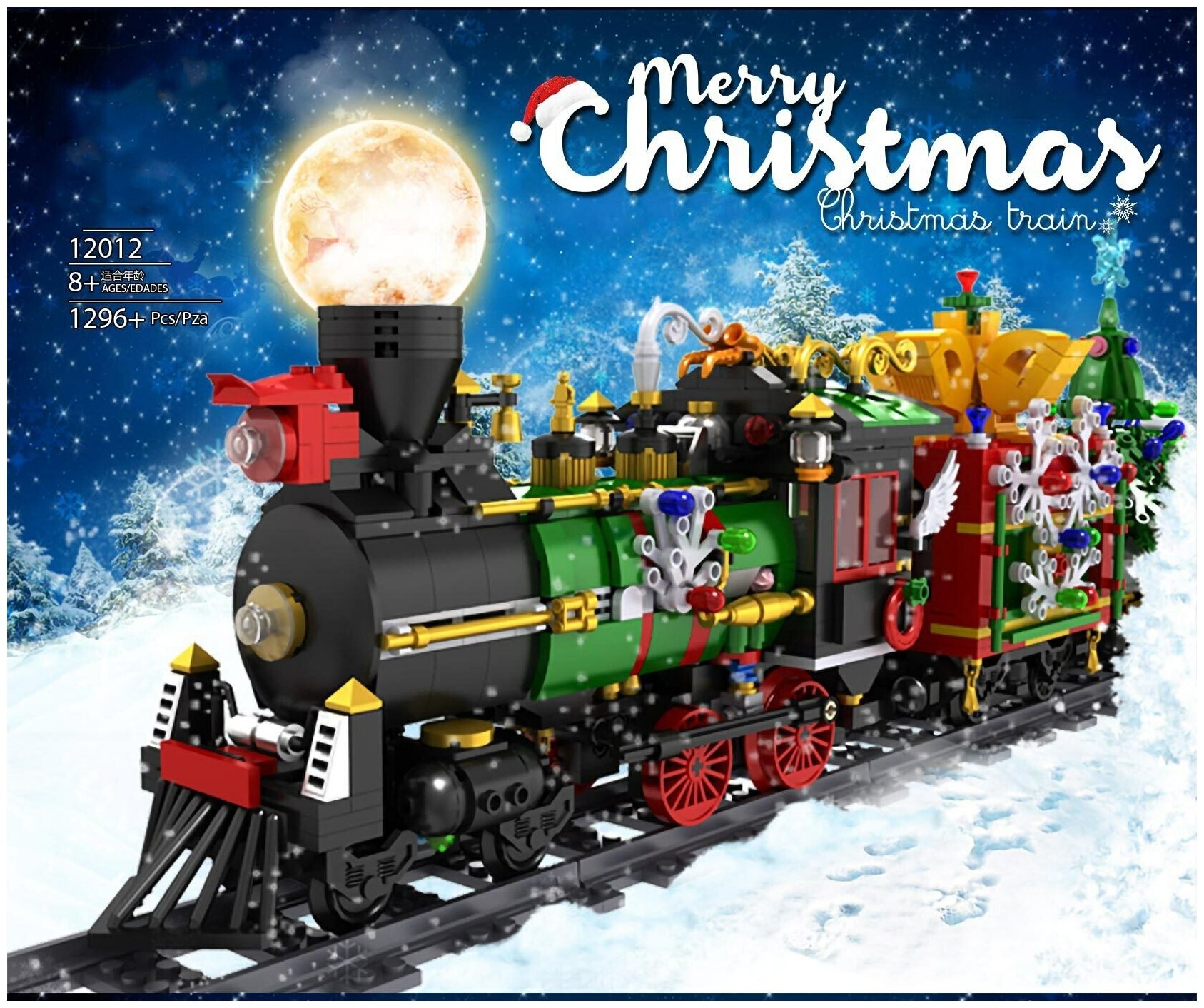 Конструктор Mould King Рождественский поезд на радиоуправлении (свет, звук, имитация дыма) 12012 информация: