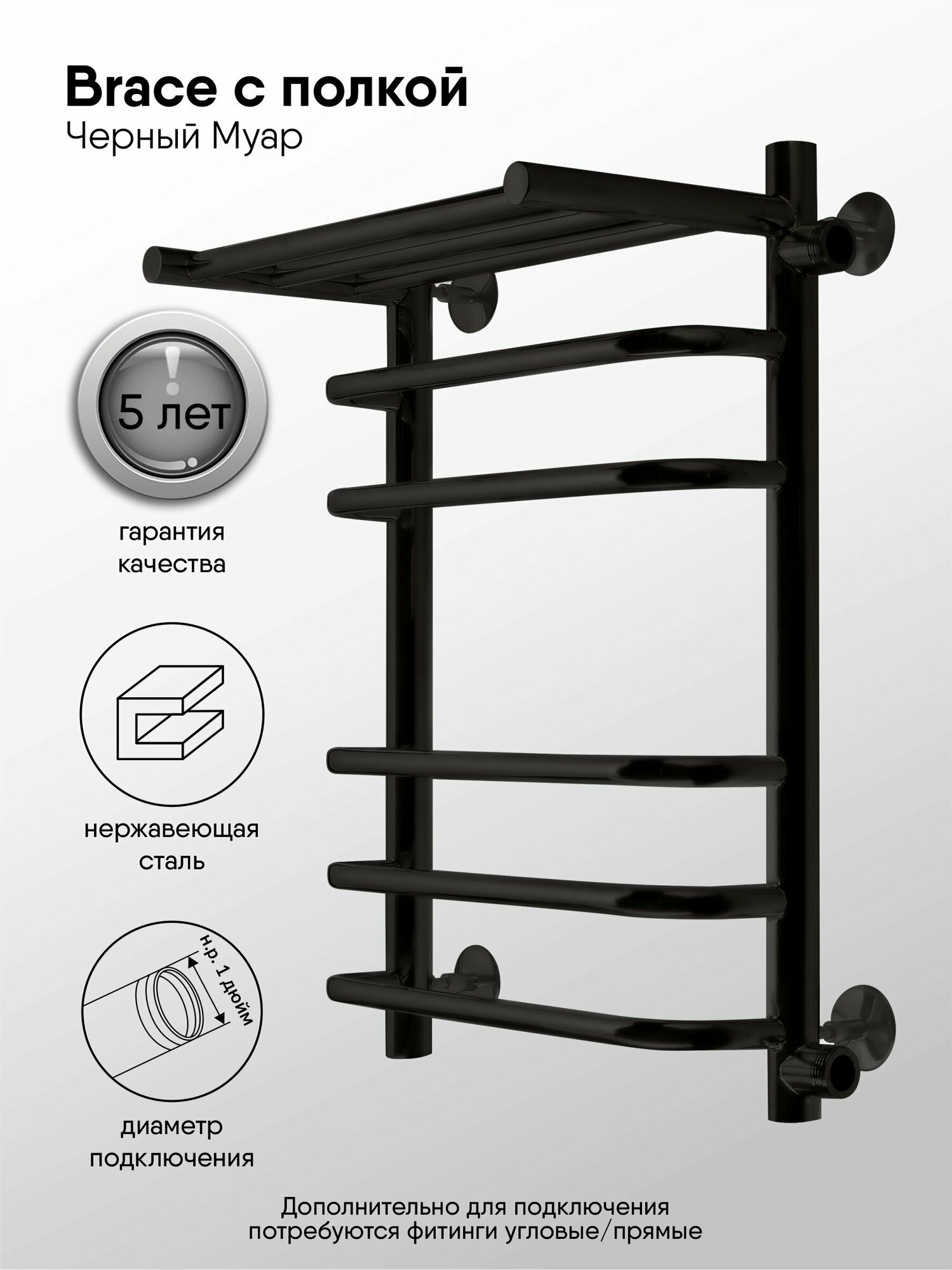 Полотенцесушитель водяной Brace с полкой 60/40 м/о 50 боковое подключение справа ( Черный муар) INDIGO