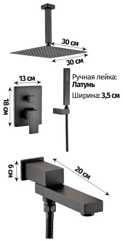 10 цен на Душевая система скрытого монтажа Grocenberg GB5089BL-2 Чёрный матовый